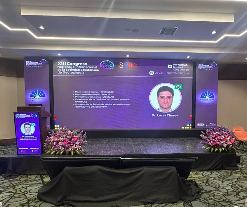 A Faculdade UNINTA Fortaleza ganhou destaque no cenário internacional da Neurocirurgia com a participação do professor do curso de Medicina, Dr. Lucas Chaves, no XIII Congresso Internacional da Sociedad Ecuatoriana de Neurocirugía, um dos mais relevantes encontros científicos da área na América Latina, realizado entre os dias 21 e 23 de novembro, em Puerto de Santa Ana, no Equador.