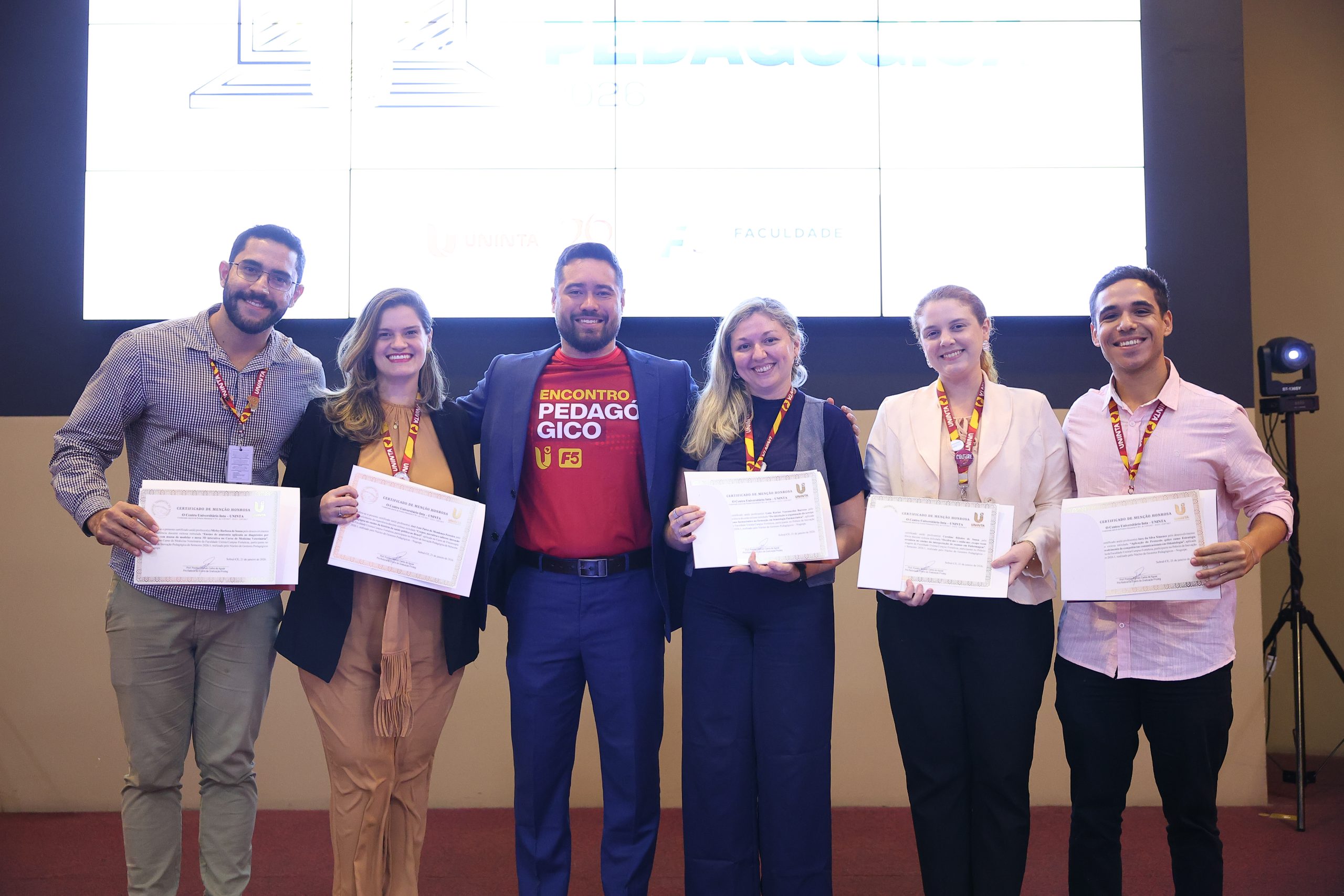 Durante o encontro, foi realizada mais uma edição do Prêmio de Inovação Pedagógica, iniciativa que reconhece experiências pedagógicas inovadoras desenvolvidas pelos docentes ao longo do semestre anterior. O Centro Universitário UNINTA Fortaleza obteve destaque ao conquistar oito projetos premiados, envolvendo os cursos de Fisioterapia, Medicina Veterinária, Enfermagem, Odontologia e Farmácia, além do Núcleo de Idiomas da instituição.